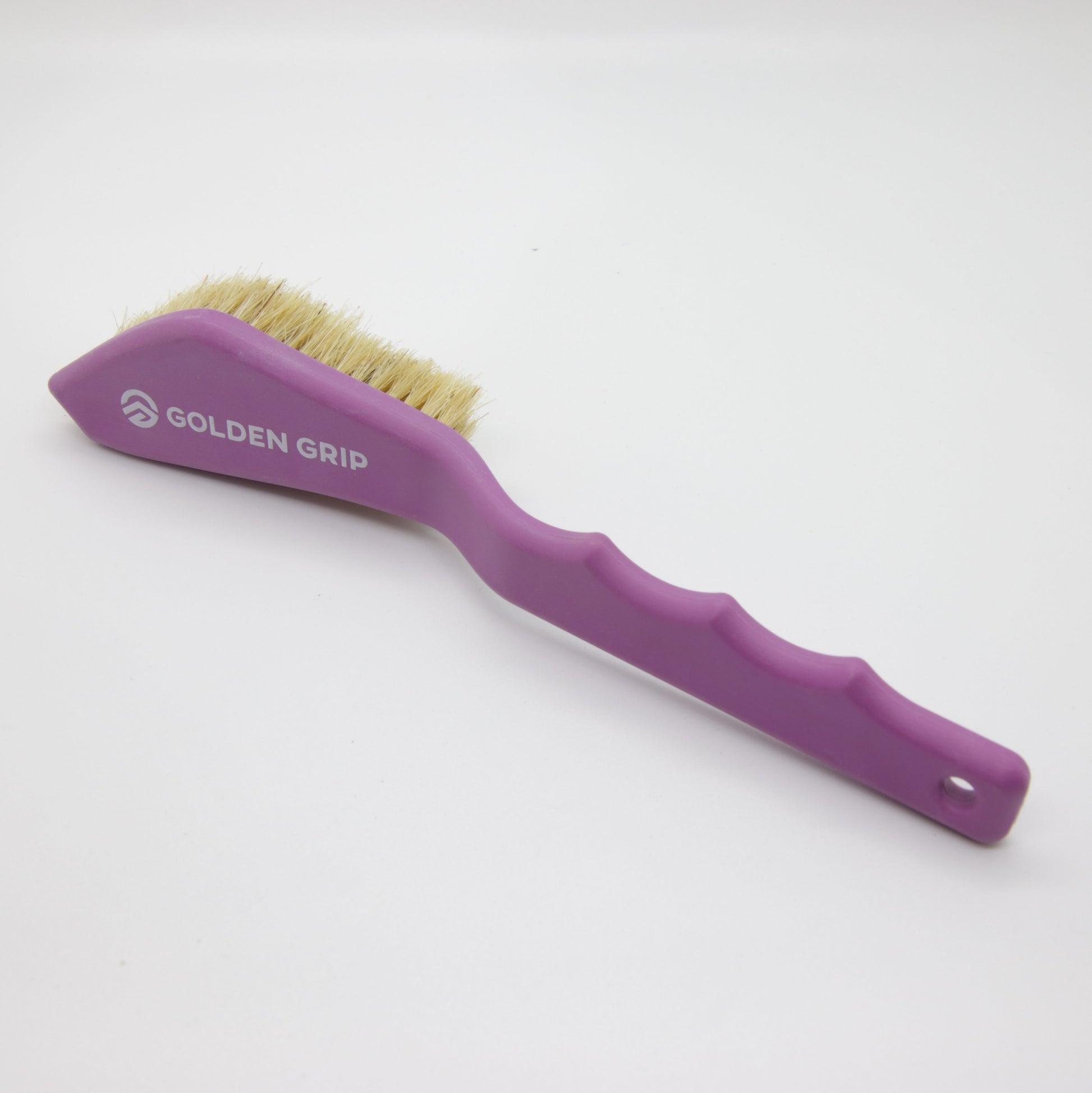 Excess chalk, skin, and sweat left behind by climbers before you can cover the shape and texture of a climbing hold that make it possible to get up the wall. Fortunately, that can all be brushed away! Our boar's hair brushes are meant for brushing away chalk without damaging holds or natural rock faces.
